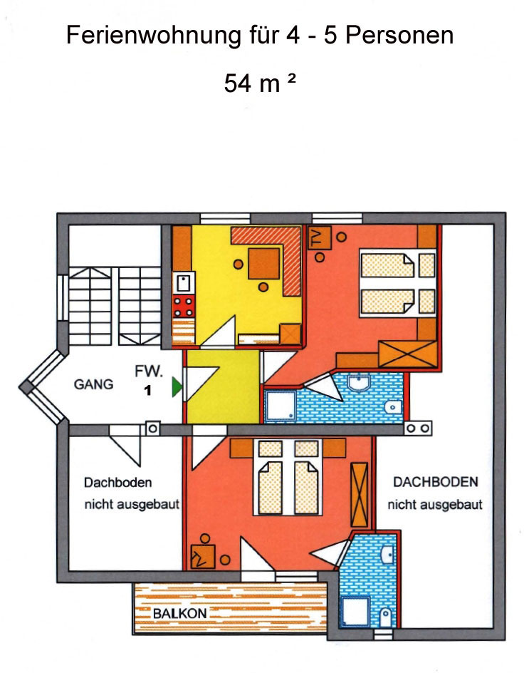 befindet sich im Dachgeschoss unseres Hauses und bietet mit etwa 54 m²
